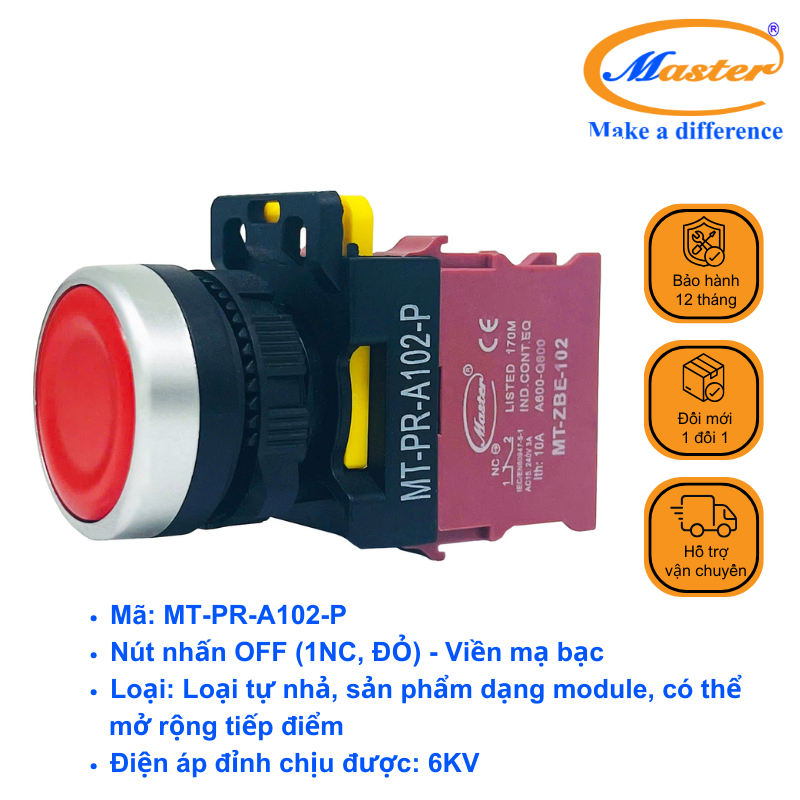 2. THÔNG SỐ KỸ THUẬT NÚT NHẤN OFF MÀU ĐỎ MASTER - VIỀN MẠ BẠC