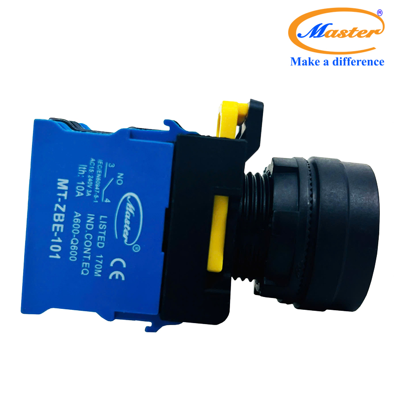 Nút nhấn ON có đèn màu xanh lá Master - Loại tự giữ là thiết bị điều khiển điện chuyên dùng để bật thiết bị hoặc mạch điện trong hệ thống tủ điện công nghiệp. Điểm đặc biệt là cơ chế tự giữ, cho phép nút duy trì trạng thái ON sau khi nhấn, không cần giữ tay. Đèn LED màu xanh lá tích hợp giúp hiển thị trực quan trạng thái ON, giúp người vận hành dễ dàng nhận biết thiết bị đã được kích hoạt.