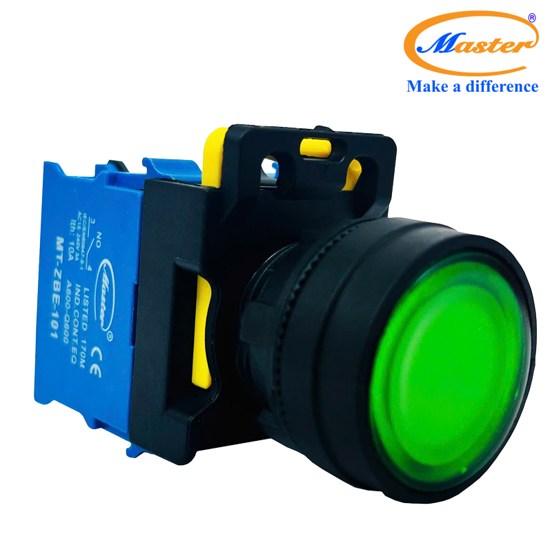 1. GIỚI THIỆU NÚT NHẤN ON CÓ ĐÈN MÀU XANH LÁ MASTER - LOẠI TỰ NHẢ