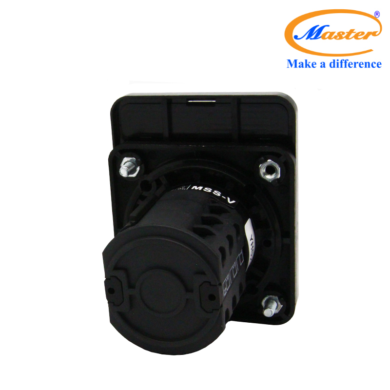 - Chuyển mạch Volt 7 vị trí Master có cấu tạo gồm: nút vặn, bảng trạng thái, mặt lắp tủ điện và bộ tiếp điểm.