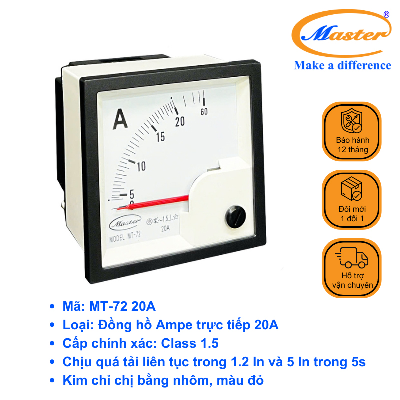 Đồng Hồ Đo Ampe Trực Tiếp MT-72 20A Master