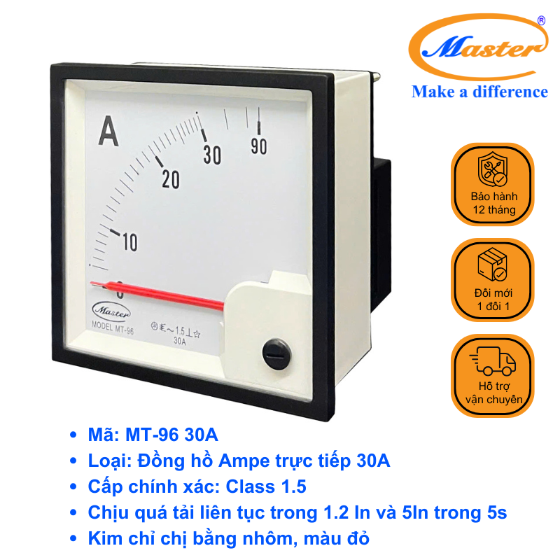 Đồng hồ đo Ampe trực tiếp MT-96 30A Master là lựa chọn đáng tin cậy để giám sát và kiểm soát dòng điện trong hệ thống điện. Với khả năng đo trực tiếp, hiển thị dễ đọc, độ chính xác cao và độ bền vượt trội, sản phẩm này mang lại hiệu quả sử dụng lâu dài và tiết kiệm chi phí.